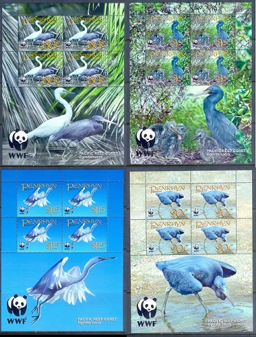 B023- British Colony Penrhyn 2008 Birds WWF W.W.F 4 sheets.