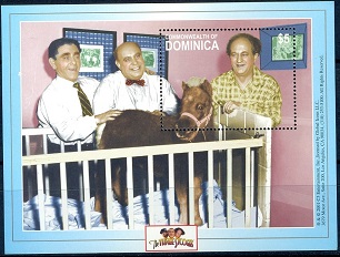 B263- Dominica Miniature Sheet. The three Stooges. Film Actors.