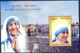 B291- India 2016. Saint Mother Teresa Canonization, Nobel Peace.