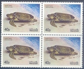 B318- Pakistan 1981 Wildlife Protection Fauna Green Turtle Block of Four.