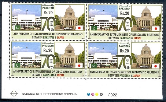 C060- Pakistan 2022. 70th years of Pak – Japan Diplomatic Relation. Building. Flag.