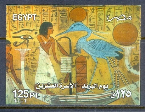 E074- Egypt 2002 Stamp Day Post Day Painting from Tomb of Anhur & Irinefer Pharaonic.