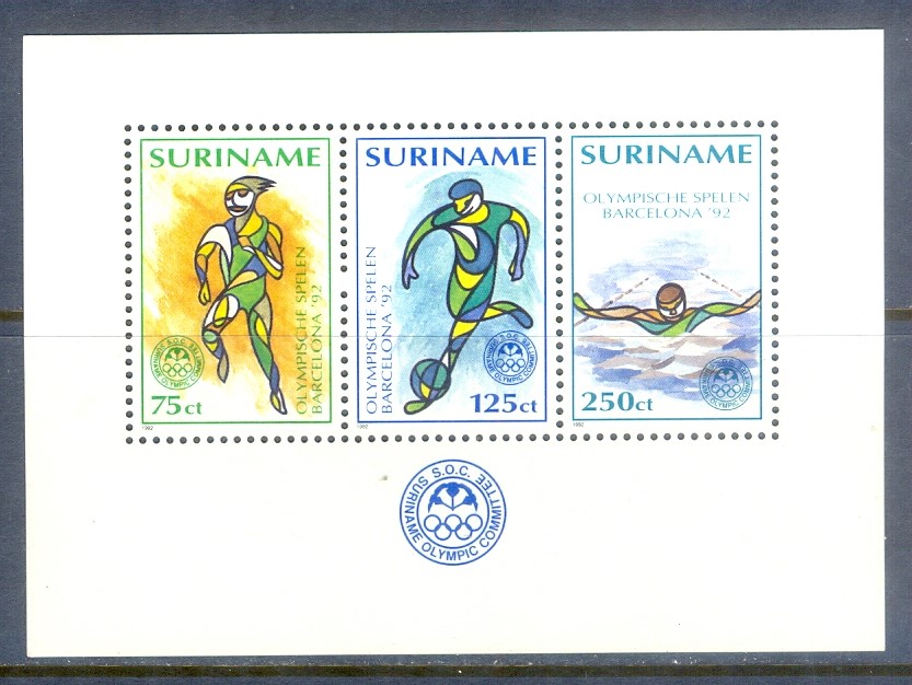 E248- Suriname 1992 Olympische Spelen Barcelona ’92. Olympic Games football, voetbal, swimming, athelic.